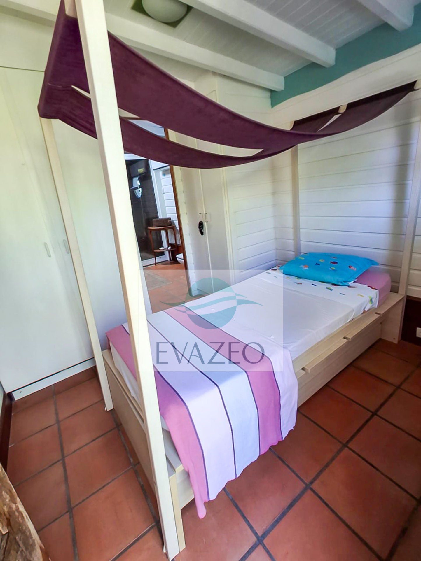 - Une troisième suite comprenant deux chambres communicantes (dont une parfaitement adaptée aux enfants) avec une salle de bains commune