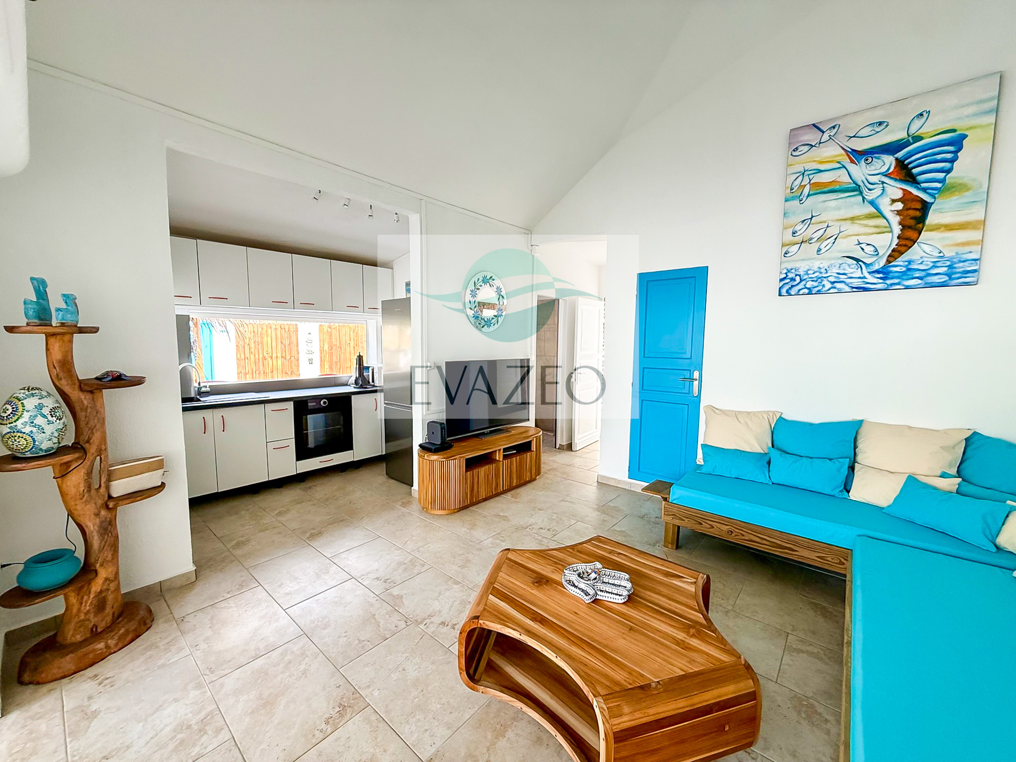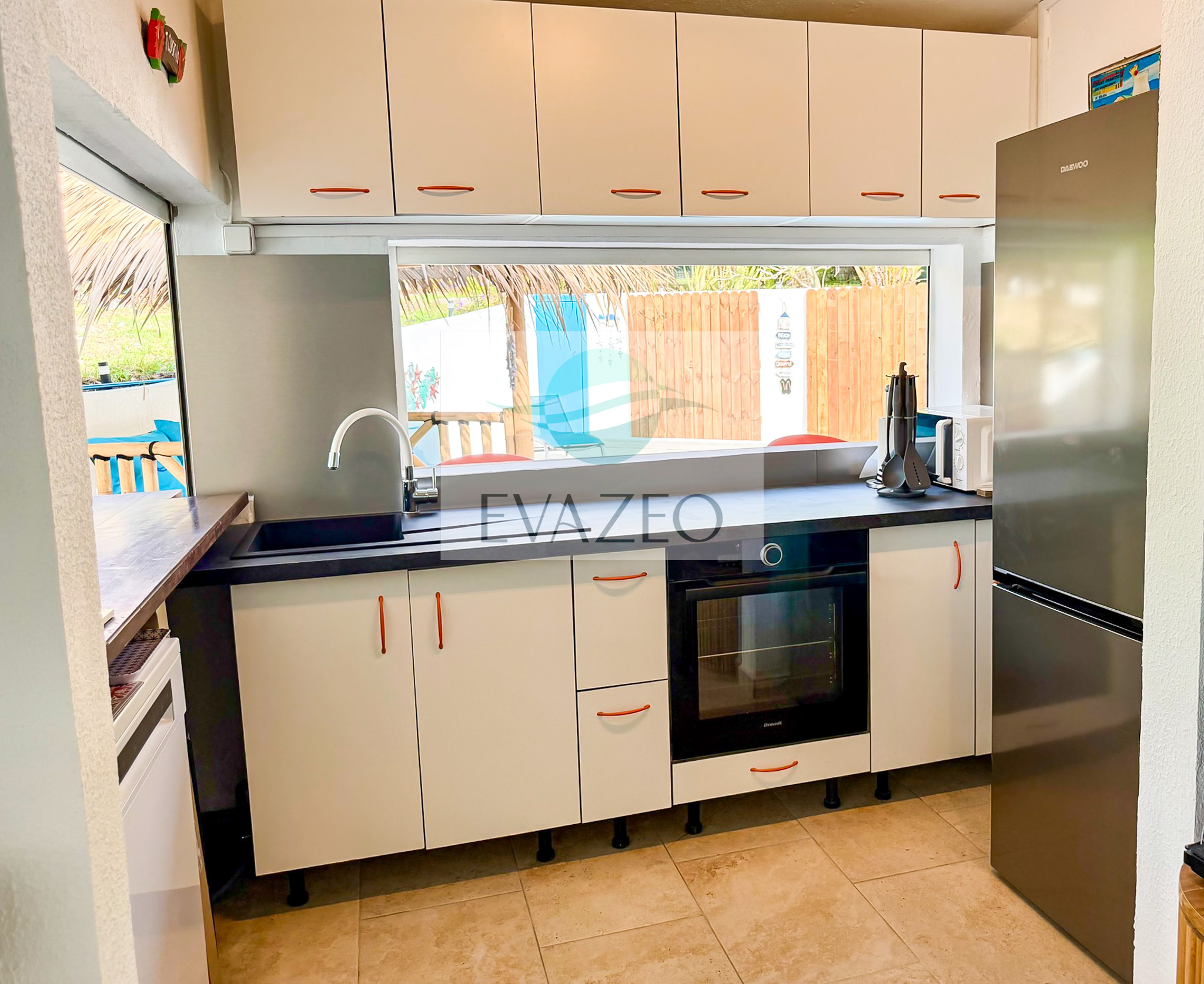 - Une cuisine équipée ouverte sur le salon, créant un espace de vie convivial et lumineux