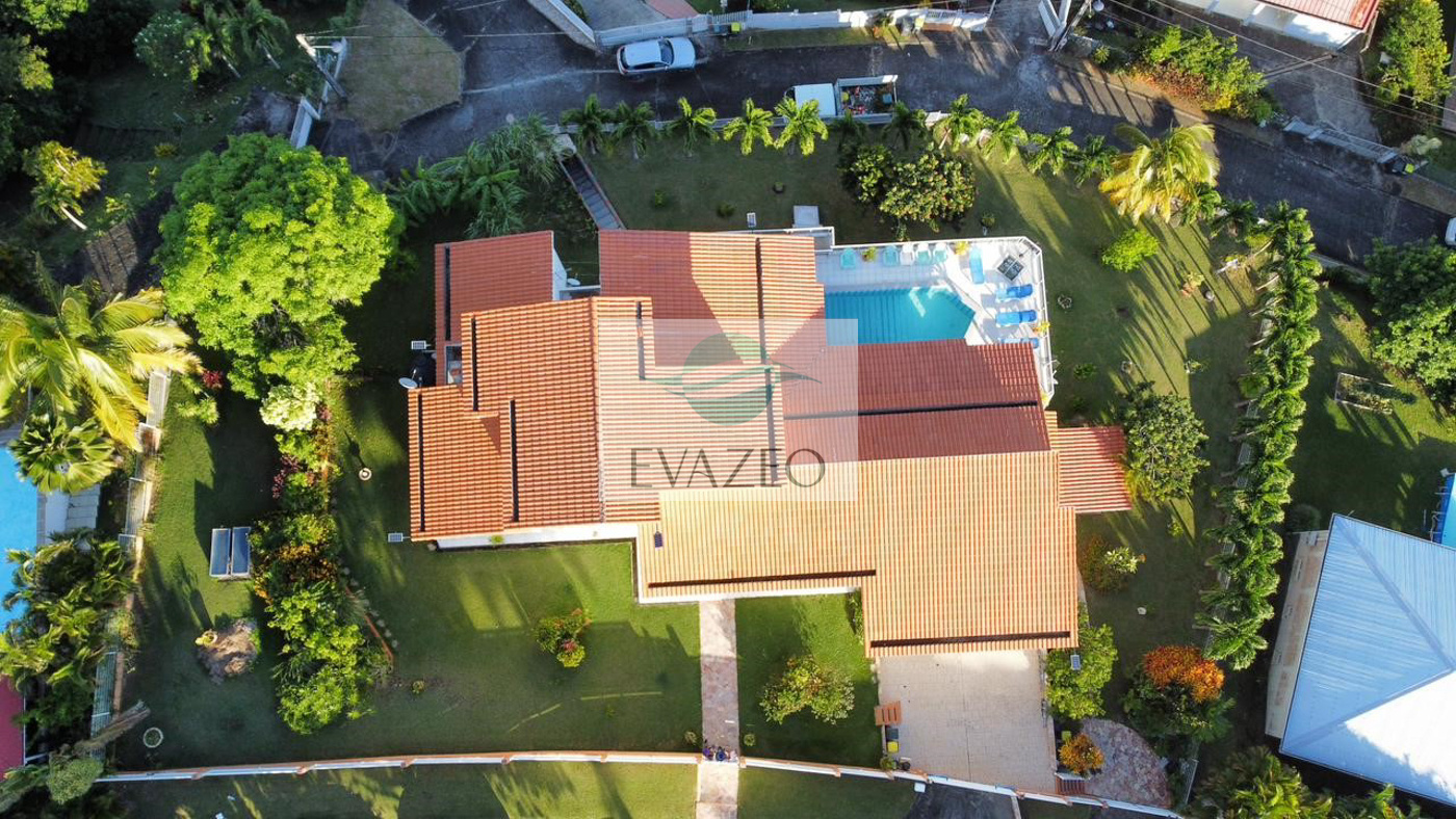 Schœlcher (97233)L'agence TROPIK'IMMO vous présente cette remarquable villa d'architecte de grand standing, entièrement construite en dur avec toiture en tuiles sur béton. Cette propriété de 325m² habitables offre une configuration exceptionnelle avec deux appartements totalement indépendants sur un terrain paysager de 1 450m².