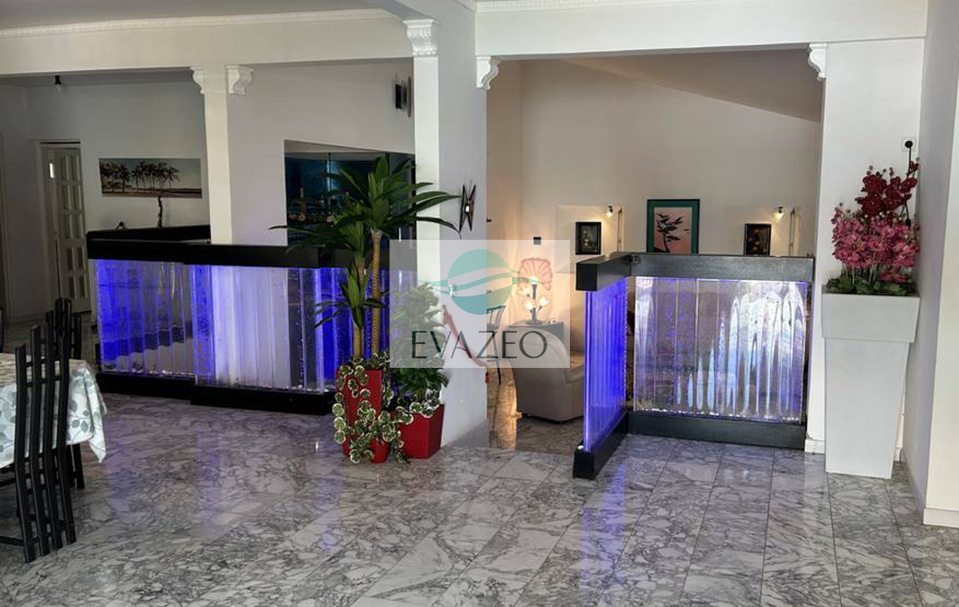 L'appartement principal propose de vastes espaces de vie avec un salon-salle à manger de 100m² et une cuisine équipée de 18m². La partie nuit comprend 5 chambres spacieuses et 4 salles de bain. Deux garages fermés avec rideaux électriques et un accès direct à la piscine complètent ce niveau.