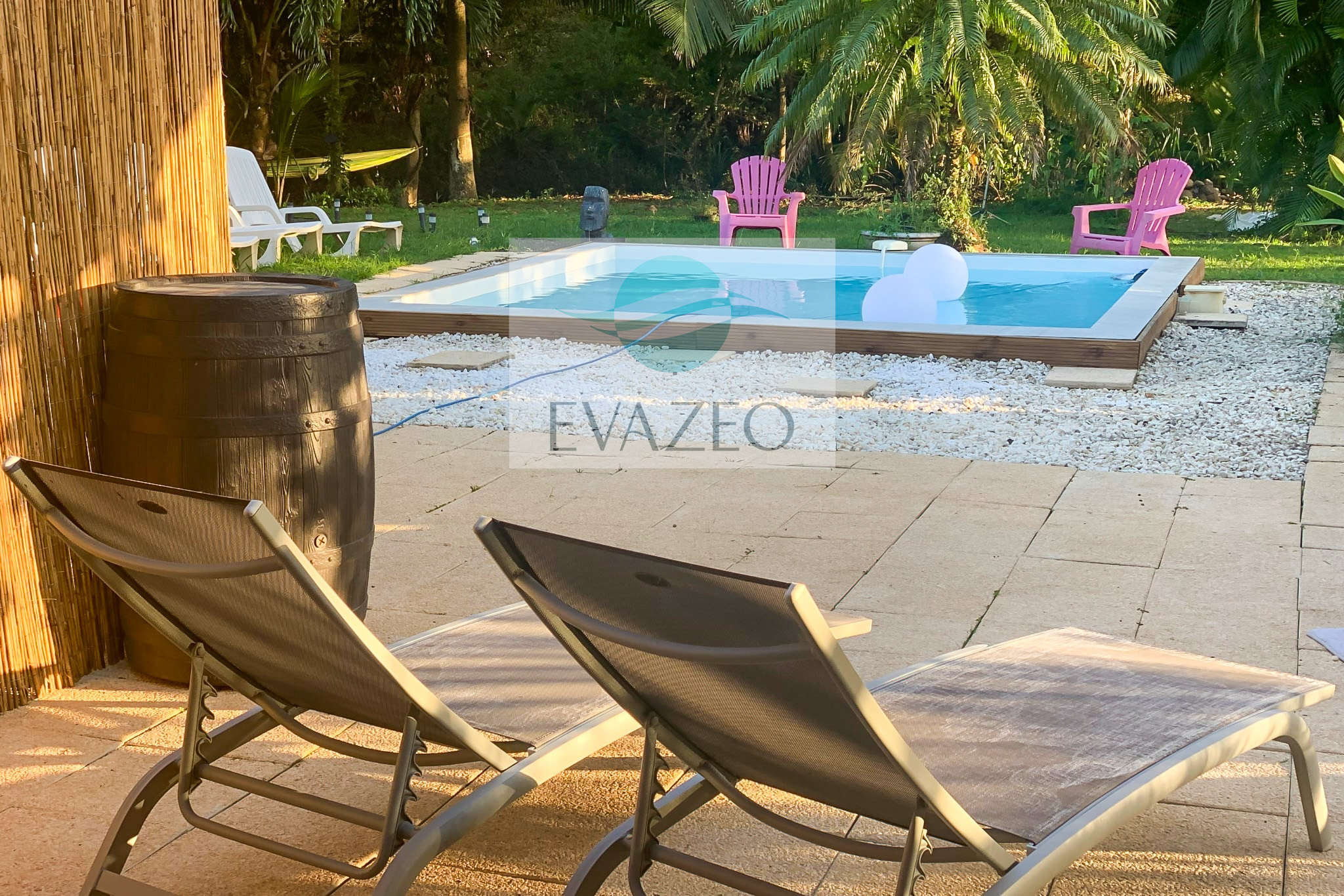 - Une vaste terrasse couverte donnant directement sur la piscine et le jardin tropical